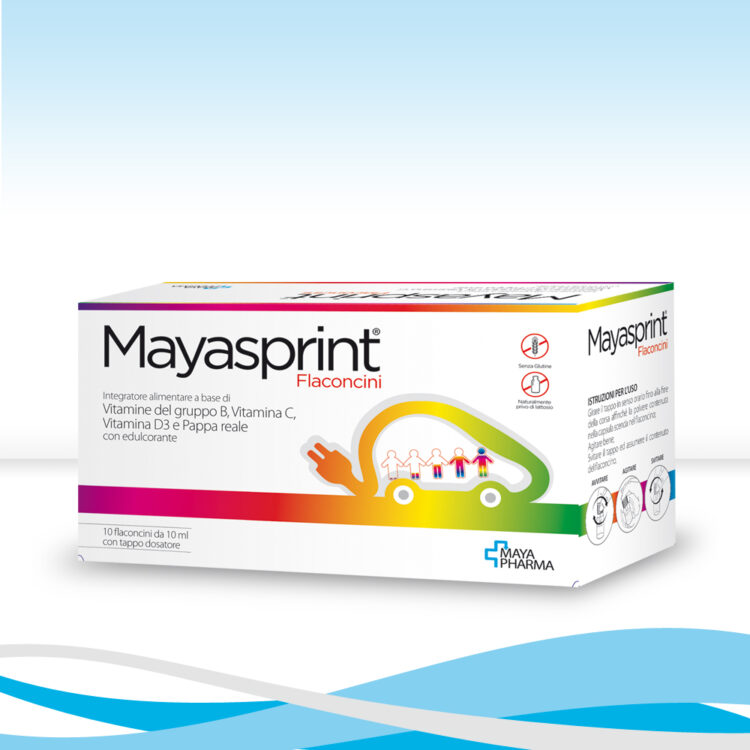 MAYASPRINT  è un integratore alimentare a base di Vitamine del gruppo B, Vitamina C, Vitamina D3 e PAPPA REALE in flaconcini monodose.
